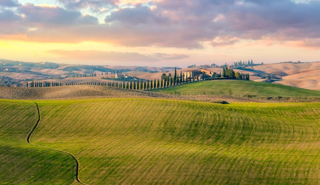 Il paesaggio della Val d'Orcia sorprende con i suoi colli e le lunghe distese che si aprono nella valle. E' patrimonio dell'Unesco e una dei luoghi più visitati dai turisti fi tutto il mondo per la magia dei suoi scorci e dei suoi tramonti.